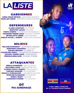 Pour ce rassemblement, Pia Sundhage a convoqué 23 joueuses. Nadia Cassamajor et Amélie Chloé Joseph font partie des nouvelles têtes appelées pour ce stage, qui débutera ce dimanche 22 février 2026.